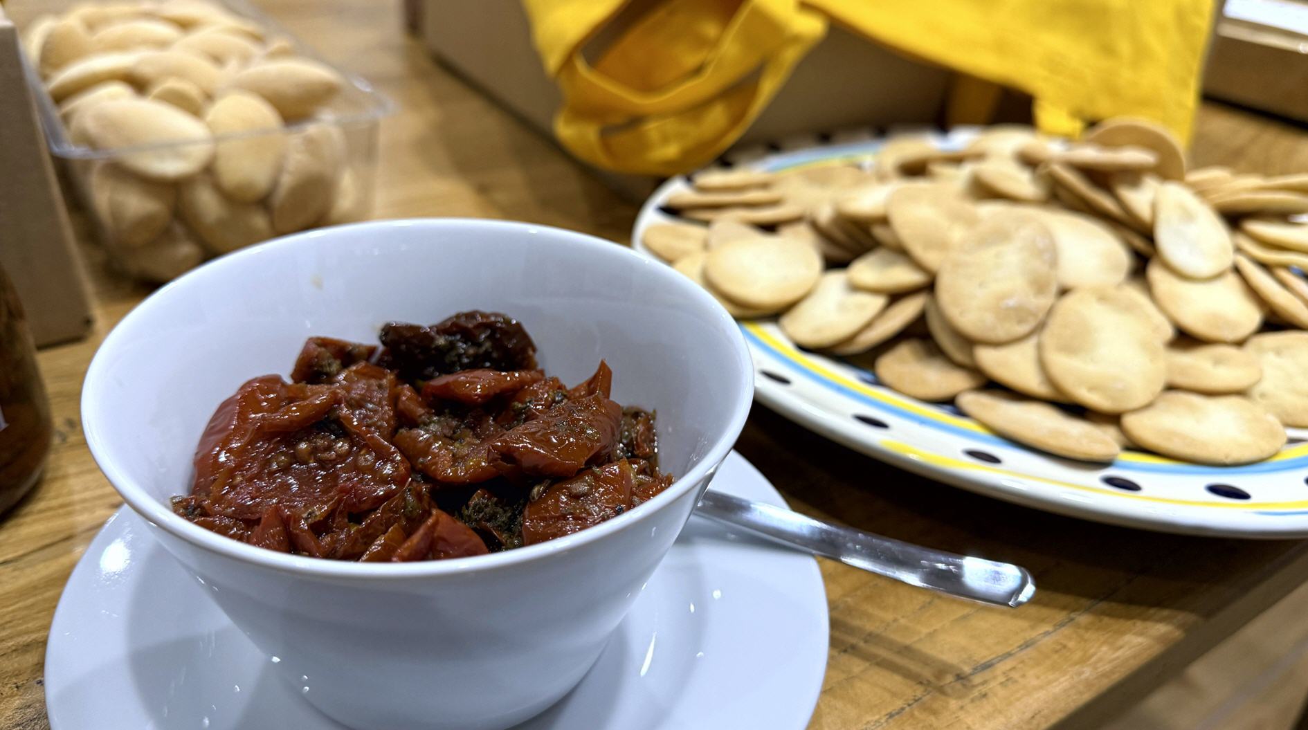 Probieren Sie nach Herzenslust unsere ausgewählten Olivenöle, knusprige Grissini und leckeren Antipasti. Dazu haben wir exklusiv ganz frische Pesti, die einfach nur unglaublich köstlich sind.